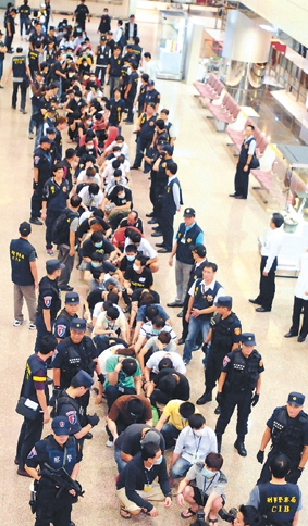 中国台湾网9月20日消息 据台湾《联合报》报道,台湾嫌犯受僱在菲律宾打电话骗大陆人,两岸和菲律宾联手在上月组成“0823”项目小组,在马尼拉瓦解四个诈欺集团20处电信机房,逮捕385名嫌犯;其中279名台湾嫌犯,昨天以两架包机当“空中监狱”押返。