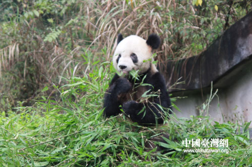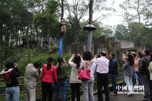 爬树的大熊猫(中国台湾网 王晓蕊 摄)
