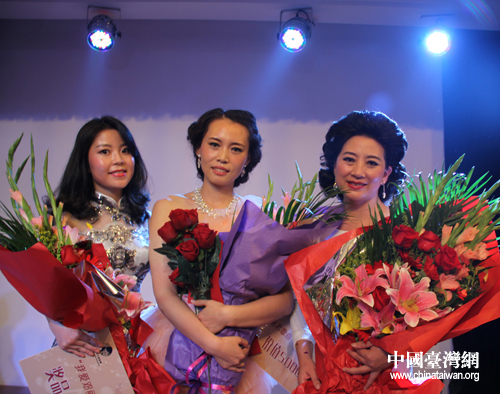 “我爱邓丽君歌曲模仿大赛”的总决赛三甲:左起杜佳瑶、潘蓬、于红萍。(中国台湾网 吴怡 摄)