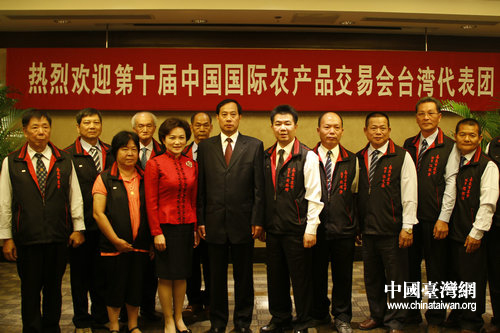农业部总经济师、办公厅主任陈萌山与第十届农交会台湾代表团合影留念。(中国台湾网 郭莹莹 摄)