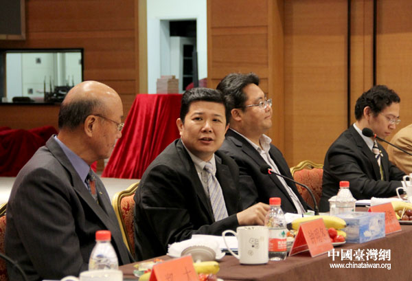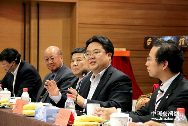 9月29日,由北京市台湾同胞联谊会、北京市青年联合会主办的京台两地中青年企业人士座谈会在京举行。来自海峡两岸的三十多位中小企业代表在多个领域座谈创业理念,分享经验,共同促进两岸经济文化的合作与交流。(中国台湾网 普燕 摄)