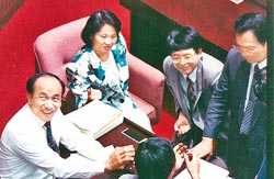 王志雄(左)担任台“立委”时意气风发。台湾《中国时报》资料照片