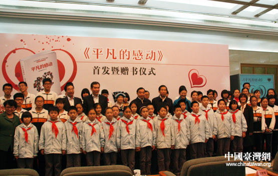 中央外宣办、国家互联网信息办有关部门负责人和北京市中小学师生代表在仪式结束后合影。(中国台湾网 李丹 摄)
