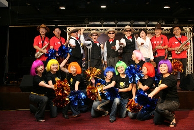 台中爵士音乐节将从20日起登场,台中市长胡志强(后左三)16日带领3位副市长变身摇滚歌手,载歌载舞为活动暖身。图片来源:台湾“中央社”