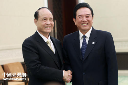 16日晚,海协会会长陈云林(右)会见了首次来大陆的台湾海基会新任董事长林中森一行。(中国台湾网 陈佳慧 摄)