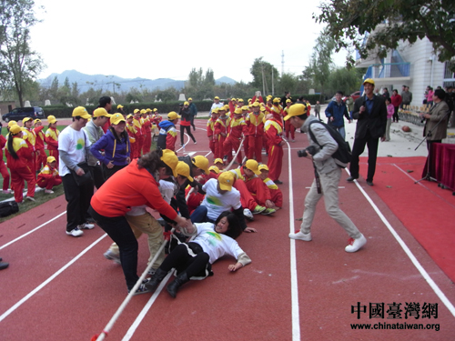 顶新的大哥哥大姐姐在拔河比赛中那么投入,都摔倒了,疼不疼?(中国台湾网记者 芜同摄)