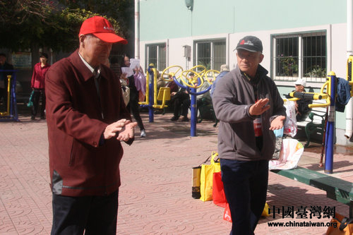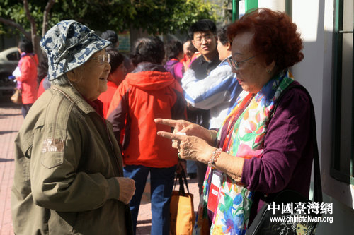来自台湾的徐俊梅女士与天津的温先廉女士,在天塔街气象南里社区偶遇,发现竟然都是陕西省五台县人,二人用家乡话攀谈起来。(中国台湾网 郭莹莹 摄)