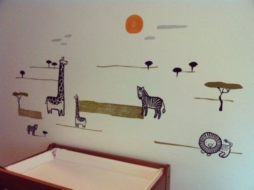 孙燕姿在微博秀出婴儿房的照片,房间的墙壁上画了长颈鹿、斑马、狮子等图案。(图片来自台媒)