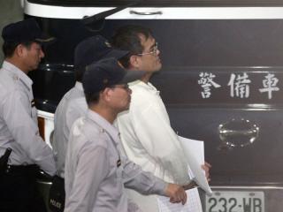 台特侦组25日起诉前台当局“行政院秘书长”林益世(右),移审台北地方法院。台北地院裁定新台币5000万元交保,林益世觅保无着,法院26日凌晨裁定林益世羁押台北看守所 。图片来源:台湾“中央社”