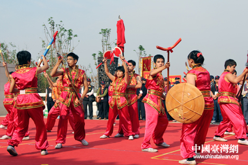 台湾大学的学生们在祈福仪式上进行表演。(中国台湾网 陈睿 摄)
