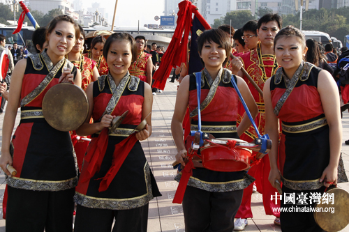 在祈福活动上进行表演的台湾大学的学生们。(中国台湾网 陈睿 摄)