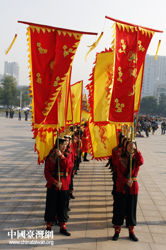 大祭幡队伍在神农城广场整装待发。(中国台湾网 陈睿 摄)