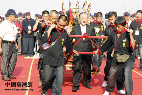 新党主席郁慕明先生进行祈福仪式。(中国台湾网 陈睿 摄)