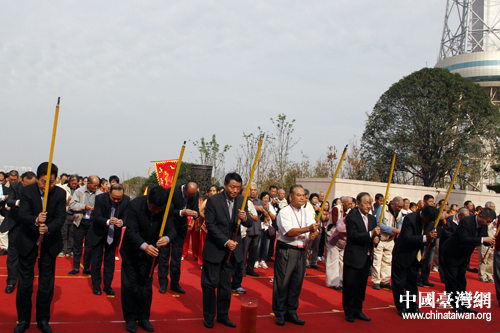 两岸的嘉宾们共同敬献高香,为炎帝神农氏祈福。(中国台湾网 陈睿 摄)