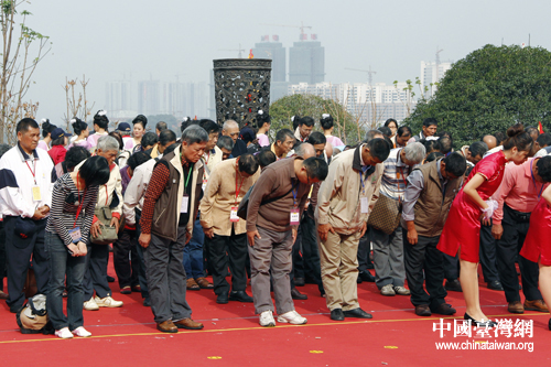 来自台湾省的信众向炎帝行三鞠躬礼,表达对炎帝神农氏的无限敬仰。(中国台湾网 陈睿 摄)