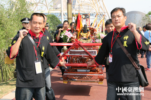 11时,祈福人员鸣钟击鼓欢送神尊回驾。(中国台湾网 陈睿 摄)