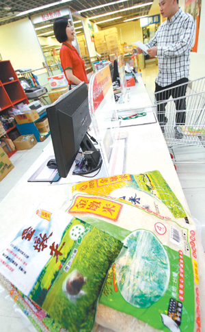 金墩米被验出农药残留超标,昨天有许多消费者到大卖场退换货。(图片来源:台湾《联合报》)