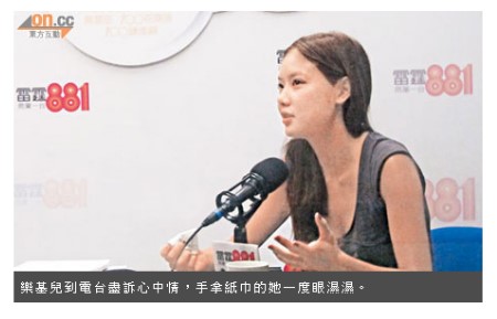 乐基儿在香港电台谈离婚始末。图片来自台媒