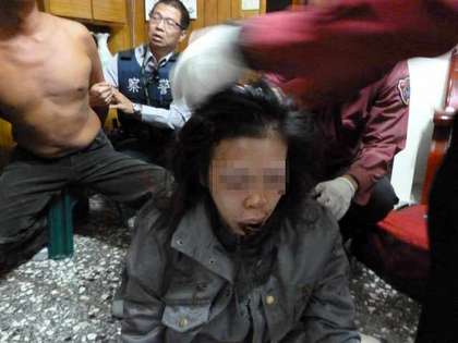 晚间由于郭男屋内传出叫骂声音,邻居发觉不对劲报警,警察到场后见女子的脸被打成猪头并倒在地上,郭男则是浑身酒味拿着镰刀挥舞。