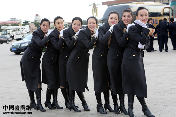 8日上午9时,中国共产党第十八次全国代表大会将在京开幕。为十八大服务的工作人员形成了人民大会堂前一道靓丽的风景。(中国台湾网 王伟 摄)