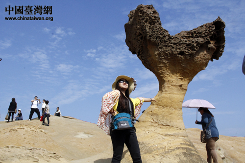 游客在野柳“怪石”拍照留念。 (中国台湾网 于斯文 摄)