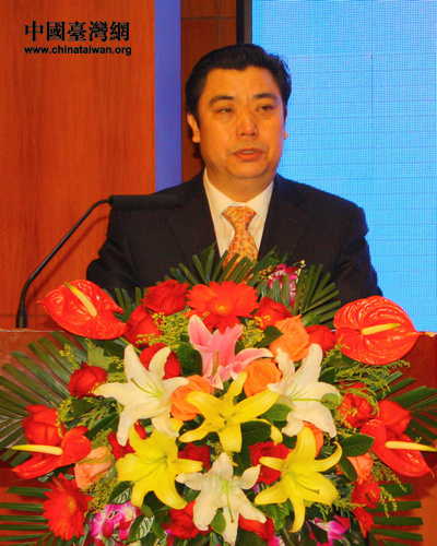 农业部副部长陈晓华在发布会上讲话。(中国台湾网 郭莹莹 摄)