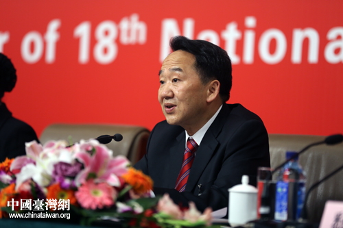 11月11日下午,十八大新闻中心在梅地亚中心二楼多功能厅举办中外记者招待会,介绍文化体制改革和公共文化服务体系建设情况,并回答记者提问。图为国家广电总局党组成员、副局长、中央文化体制改革和发展工作领导小组办公室副主任田进回答记者提问。(中国台湾网 王伟 摄)