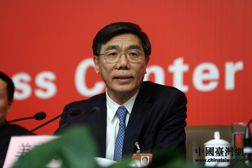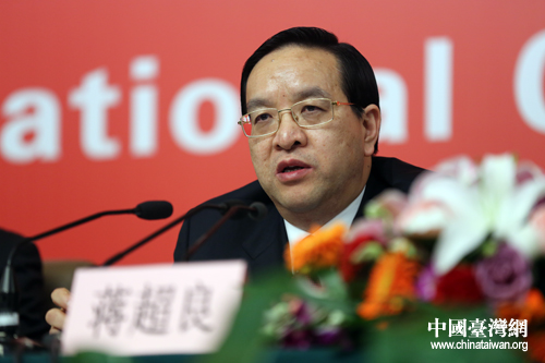 中国农业银行董事长、党委书记蒋超良回答记者提问。(中国台湾网 王伟 摄)