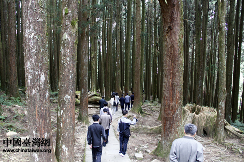 参访团游览阿里山天然森林。(中国台湾网 于斯文 摄)