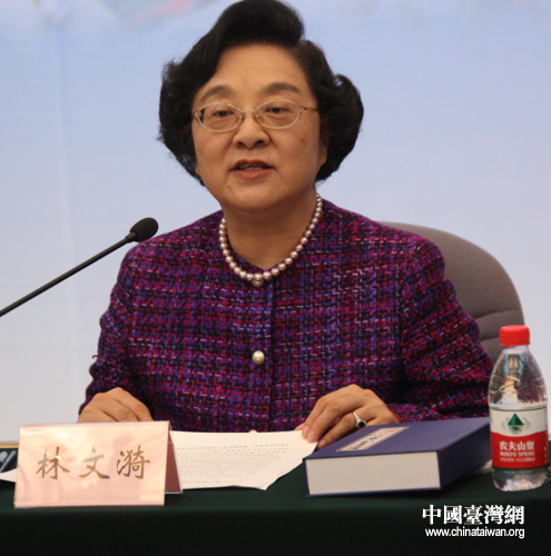 全国政协副主席、台盟中央主席林文漪在纪念台盟成立65周年座谈会上发表讲话。(中国台湾网 王怡然 摄)