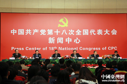 十八大新闻中心在梅地亚中心二楼多功能厅举办第四场记者招待会,邀请住房城乡建设部部长、党组书记姜伟新,国家发展和改革委员会副主任、党组副书记朱之鑫,环境保护部部长、党组书记周生贤,人力资源和社会保障部副部长、党组副书记杨志明介绍中国民生领域工作情况,并回答记者提问。(中国台湾网 王伟 摄)