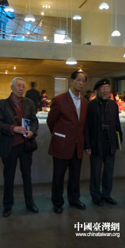 虞兰因画展在京开幕,前中国驻美国纽约总领事张伟超(中)与原纽约中华公所主席余保贤出席参观(右)等(摄影 吴小珊)