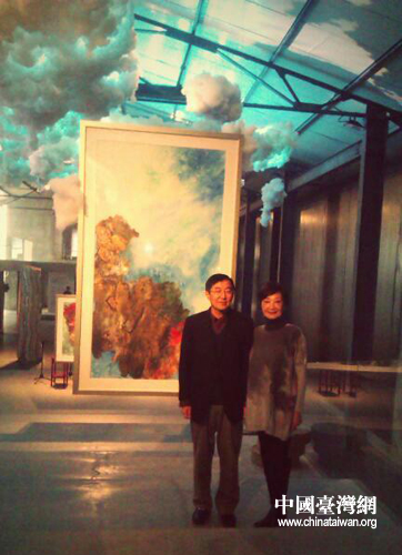 虞兰因画展在京开幕前,中国侨联副主席乔卫与虞兰因合影 (大石馆资料 中国台湾网 发)