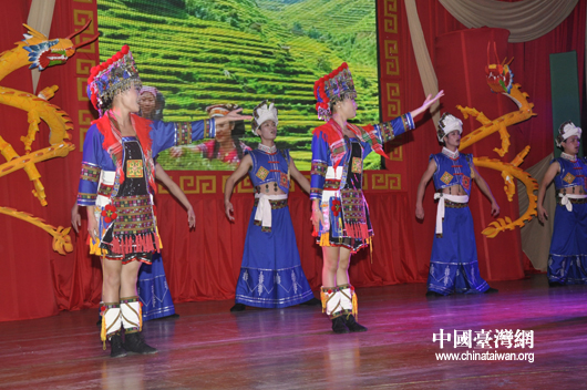艺术家们身着少数民族服饰合唱歌曲。(中国台湾网 发)