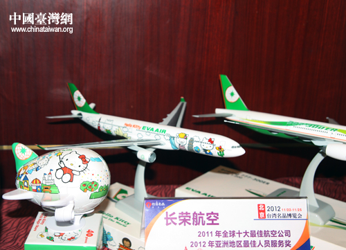 长荣航空即将“现身”两岸服务业品牌论坛。图为长荣航空Hello Kitty机模型。(中国台湾网 王思羽 摄)