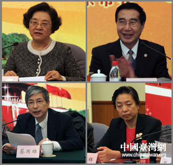 座谈会上,全国政协副主席、台盟中央主席林文漪做了精彩发言,全国政协常委、台盟中央副主席黄志贤主持座谈会。北京市政协副主席、台盟北京市委主委蔡国雄,中共十八大代表、全国台联副会长苏辉也分别做了发言。(中国台湾网 王怡然 摄)