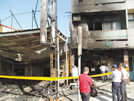 沙发店大火,隔壁邮局也遭波及,不仅外观烧黑,电线也烧毁,无法营业。(图片来自台湾“联合新闻网”)