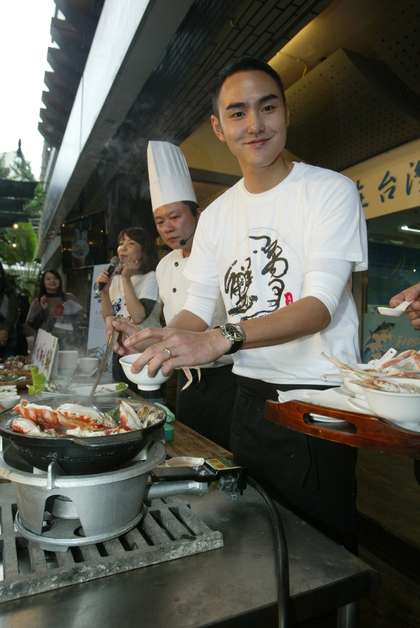 中国台湾网11月24日消息 综合台湾媒体报道,目前在新北市服替代役的阮经天,今天上午到鱼市帮新北市的万里蟹作宣传,现场还当起二厨,料理起万里蟹供民众品尝,阮经天很担心自己煮得不好吃,满脸不好意思。