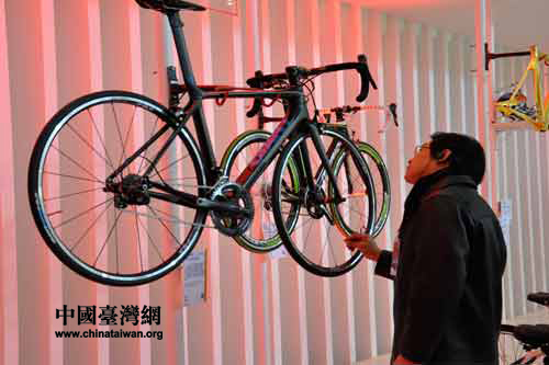 访客对展架上的自行车投去好奇目光。(中国台湾网 发)