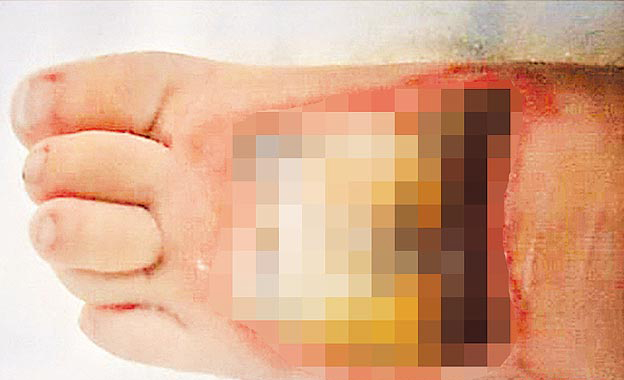 中国台湾网11月25日消息 据台湾媒体报道,台中一名6个月大的男婴,上月底发烧住进医院,因为左脚点滴漏针未及时发现,造成发炎溃烂发黑。男婴母亲不满,要求医院处理,却换来“要多少钱”的冷漠回应,她气得在网上公布宝宝烂脚的过程,昨天有上百名龙(今)年得子的父母,集结到台中市帮忙讨公道。