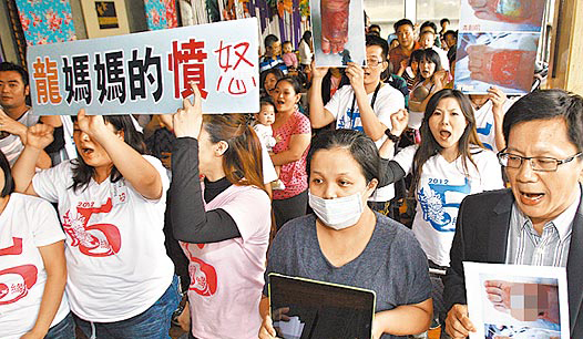 男婴打点滴漏针致左脚溃烂,百名龙年得子的父母声援抗议。图片来自台媒