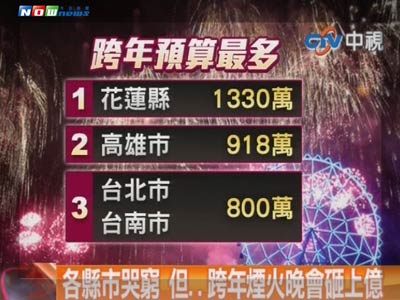 虽然各县市政府哭穷,但跨年烟火晚会预算持续编列,第一名花莲县高达1330万新台币。(图片来源:台湾“今日新闻网”)