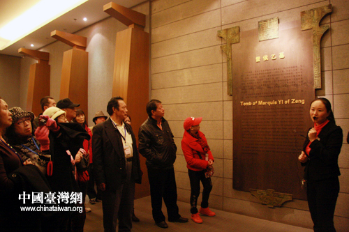 导览正在向嘉宾介绍曾侯乙墓相关文物(中国台湾网 黄艳艳 摄)