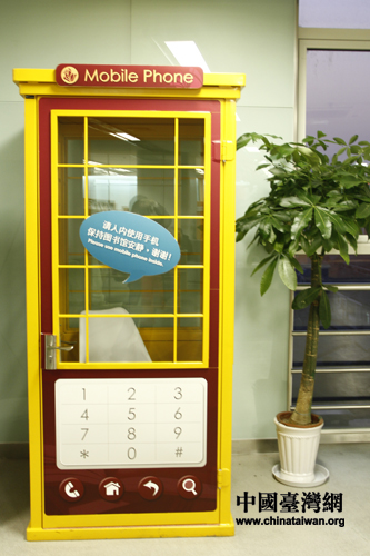 需要接打电话的读者可以随时使用带有隔音效果的电话亭。(中国台湾网 马迪 摄)