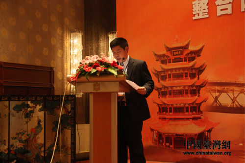 东莞市政府台湾事务局副局长陈锡辉介绍东莞市推动开展台资企业转型升级的工作情况。(中国台湾网 马萌 摄)