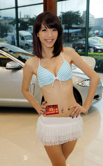 中国台湾网12月5日消息 台北新车大展将于本月21日至24日开幕,主办单位今天下午举行展前记者会,韩国赛车皇后洪珠熙与一众女模穿比基尼亮相。