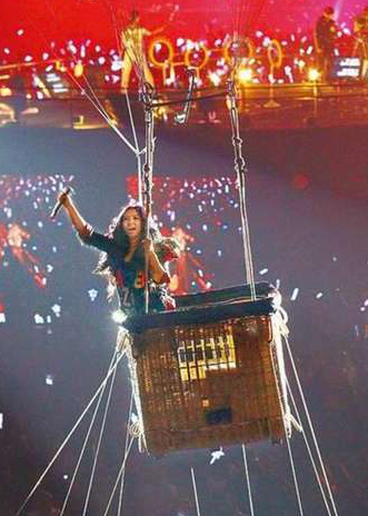 唱high的阿妹登上热气球绕场致意 噱头十足(图片来源:台湾媒体)
