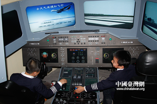 石家庄动漫大厦模拟客机里的“小驾驶员”(中国台湾网 焦源源 摄)