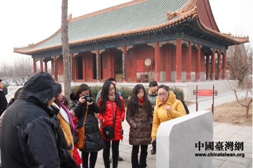 网媒记者听工作人员讲解文物细节。(中国台湾网 焦源源 摄)