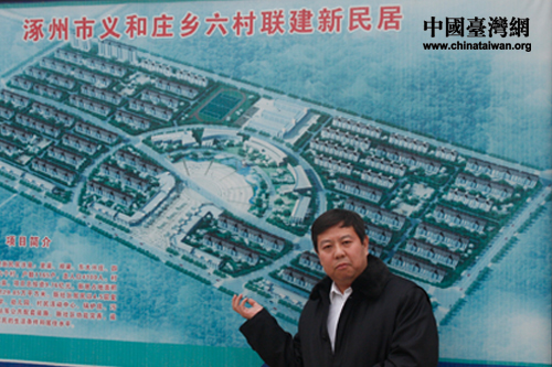 义和庄乡党委书记傅伟辉讲解规划图。(中国台湾网 焦源源 摄)